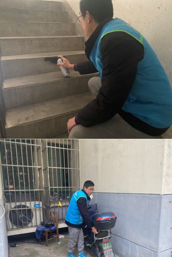 活動中,社區(qū)工作人員和志愿者帶著小鏟子、掃帚等工具對樓道內(nèi)違規(guī)堆放的雜物和張貼的小廣告進行了集中清理和整治,新業(yè)態(tài)新就業(yè)群體驛站“小哥”積極加入志愿者行列,身穿藍馬夾規(guī)范亂停亂放的非機動車,清理亂寫亂涂的小廣告,發(fā)現(xiàn)一處,清理一處,努力給居民營造干凈整潔的環(huán)境。