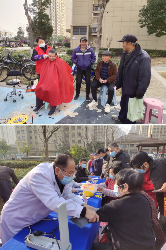 而另一邊的愛(ài)心義剪、健康義診等服務(wù)區(qū)也十分熱鬧,來(lái)自南京五洲醫(yī)院和理發(fā)志愿者們?cè)诠ぷ魅藛T的有序組織下,一邊為居民們和殘疾人提供測(cè)量血壓、血糖檢查耳朵等服務(wù),一邊細(xì)致地為居民改善身體條件提供專業(yè)意見(jiàn)?,F(xiàn)場(chǎng)志愿者們?cè)诎l(fā)放愛(ài)耳日宣傳冊(cè)的同時(shí),還與居民共話家常,一片和諧溫暖景象油然而生。
