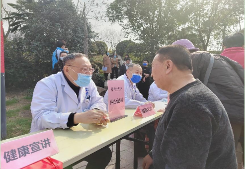 3月3日下午2點(diǎn)左右,廣場(chǎng)攤位前已排起了小長(zhǎng)隊(duì),老人們紛紛來詢問活動(dòng)開始的時(shí)間。2點(diǎn)30分,社區(qū)義診服務(wù)活動(dòng)正式拉開了序幕。老人們自覺排成三隊(duì),分別是血壓測(cè)量、血糖測(cè)量和醫(yī)生咨詢。在測(cè)量完前兩項(xiàng)后,老人們可以拿著結(jié)果單咨詢一民醫(yī)院的專業(yè)醫(yī)師并尋求建議。