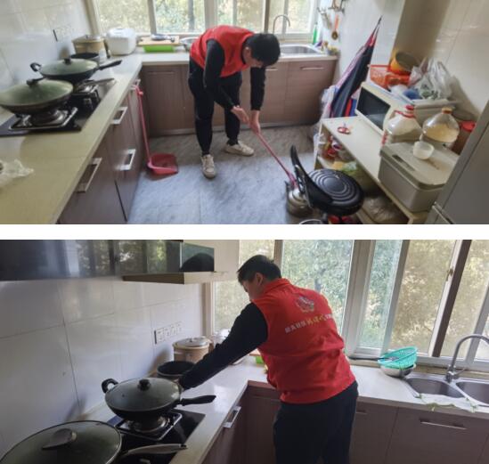 現(xiàn)場活動結束后,志愿者們來到轄區(qū)孤寡老人家中,與老人親切交談,仔細詢問老人最近的身體和生活情況,同時手持掃把、抹布等工具,擦拭桌椅、清掃垃圾、收拾廚房用品等。大家充分發(fā)揮不怕臟不怕累的精神,認真清掃老人家中的衛(wèi)生死角,經過大家的共同努力,老人的房屋煥然一新。