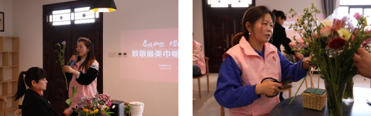 “活動很輕松,我感受到了插花藝術(shù)的魅力,看到自己插的花兒就想著每一天都要好好生活呀!”社區(qū)居民陳女士開心地說道。