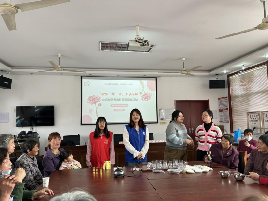 活動室內(nèi),柏墅村志愿者正圖文并茂地講解著香薰蠟燭的制作步驟和其他注意事項。“不同于傳統(tǒng)意義上的蠟燭,香熏蠟燭屬于工藝蠟燭的一種,外型豐富多姿,色彩美輪美奐,燃燒時散發(fā)出怡人清香,能夠舒緩神經(jīng)、凈化空氣、消除異味。”動手制作環(huán)節(jié),大家興趣滿滿,開始融蠟、滴精油、定型、散花等,經(jīng)過多項步驟,一個個小巧漂亮的香薰蠟燭出現(xiàn)在了大家的眼前,看著自己的作品,每位婦女的臉上都樂開了花。