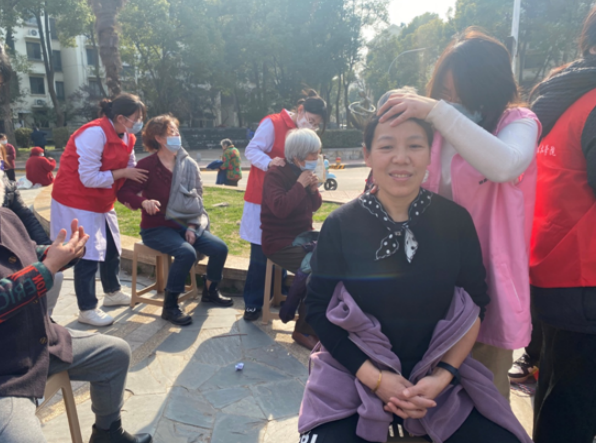 前期社區(qū)通過“掌上云”平臺發(fā)布活動通知,讓更多的居民們參與志愿活動的同時也便民其中。當(dāng)天下午兩點(diǎn)半,陽光明媚,微風(fēng)不燥,社區(qū)法治廣場熱鬧非凡,工作人員和積分志愿者們忙碌著搭建志愿服務(wù)臺?;顒蝇F(xiàn)場有來自馬群衛(wèi)生院的志愿團(tuán)隊(duì)為居民開展義診咨詢、量血壓、測血糖;口腔醫(yī)院的醫(yī)生現(xiàn)場進(jìn)行免費(fèi)口腔檢查,耐心講解牙齒日常保健、口腔疾病預(yù)防等方面的常識;社區(qū)便民服務(wù)中心工作人員向居民發(fā)放《城鄉(xiāng)居民醫(yī)療保險政策問答》宣傳手冊,并現(xiàn)場為居民解疑答惑;轄區(qū)民警向居民發(fā)放非法集資、防范新型詐騙宣傳冊,普及電信反詐知識;街道司法所開展禁毒宣傳;轄區(qū)愛心志愿者林林發(fā)藝免費(fèi)理發(fā)、盲人藝師李俊現(xiàn)場免費(fèi)按摩、110指定專業(yè)配鎖師傅為居民配鑰匙,這些貼近居民生活的便民服務(wù)隊(duì)前更是排起了長隊(duì);共建單位南京財經(jīng)大學(xué)新聞系志愿者清理宣傳櫥窗、各類小廣告等;鐘山學(xué)院的志愿者分成兩隊(duì),一隊(duì)幫老年居民修剪指甲,一隊(duì)在現(xiàn)場維持秩序。社區(qū)黨員志愿者、五老志愿者都積極參與。