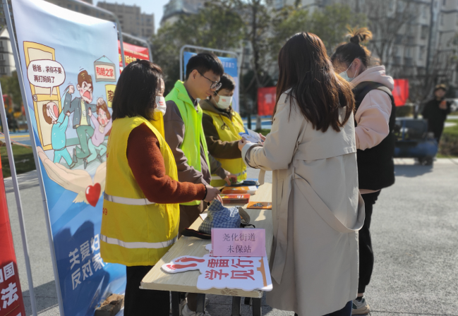 活動(dòng)現(xiàn)場(chǎng)還有服務(wù)隊(duì)的志愿者為各類法律知識(shí)宣傳,《未成年人保護(hù)法》、《消費(fèi)者權(quán)益法》、《婦女權(quán)益保障法》、《反電信網(wǎng)絡(luò)詐騙法》,志愿者通過講解宣傳單、展板與居民互動(dòng)交流,提高社區(qū)居民法律意識(shí),增強(qiáng)居民運(yùn)用法律保障自己合法權(quán)益的能力。