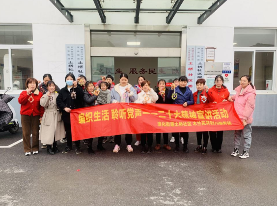 宣講進(jìn)社區(qū),理論潤(rùn)民心。為深入學(xué)習(xí)宣傳貫徹黨的二十大精神,加深社區(qū)居民群眾對(duì)黨的二十大精神的深刻領(lǐng)會(huì)和準(zhǔn)確理解,讓二十大精神落地在基層、見(jiàn)效在基層,3月23日下午,土橋社區(qū)新時(shí)代文明實(shí)踐站、婦聯(lián)聯(lián)合木蘭花開(kāi)婦兒服務(wù)站開(kāi)展“編織生活 聆聽(tīng)黨聲”二十大精神宣講活動(dòng),通過(guò)理論宣講,提高居民群眾學(xué)習(xí)二十大精神的熱情。