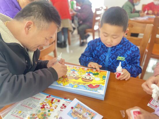 為了培養(yǎng)孩子們的動(dòng)手能力、創(chuàng)造能力,讓他們?cè)诋嬛袑W(xué)習(xí)到移風(fēng)易俗知識(shí),黨員志愿者分發(fā)紐扣畫的材料,并一步一步耐心講解具體的操作步驟,引導(dǎo)孩子們自己動(dòng)手制作。在家長(zhǎng)和孩子們的互相配合下,一幅幅色彩艷麗、知識(shí)豐富的紐扣畫便制作完成了。