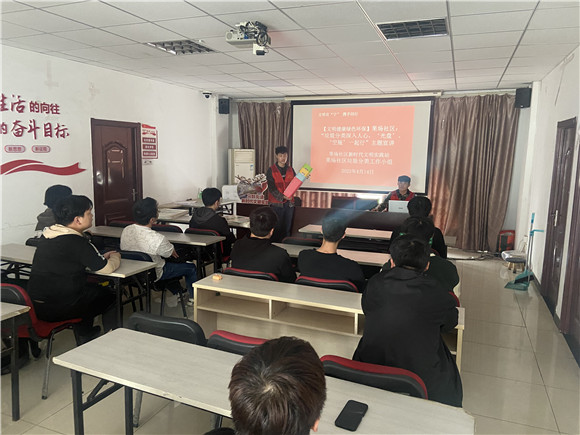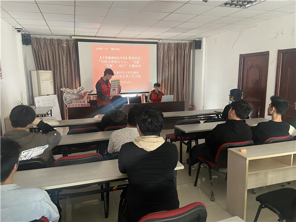 2023年4月14日下午,南京市棲霞區(qū)馬群街道果場(chǎng)社區(qū)垃圾分類工作小組依托社區(qū)新時(shí)代文明實(shí)踐站,組織社區(qū)“齊益果”積分志愿者、民兵、退役軍人志愿者在社區(qū)三樓活動(dòng)室開展了“文明有‘寧’ 攜手同行”主題宣講,宣講標(biāo)題為“垃圾分類深入人心,‘光盤、空瓶’一起行”。宣講志愿者為社區(qū)共青團(tuán)員代表。