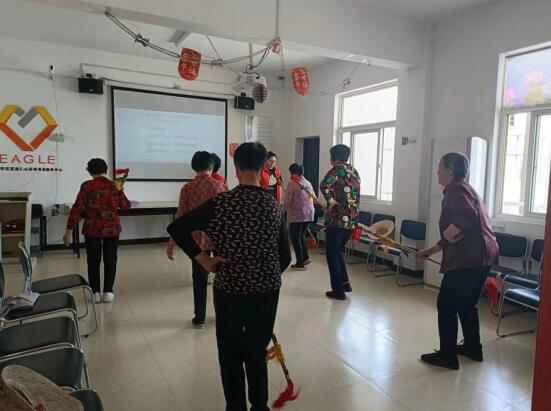 參加活動的老人們相互學(xué)習(xí)相互合作,從《十里紅軍》到《手扶欄桿》,奶奶們都能跟著音樂節(jié)拍打著花棍舞動自己。