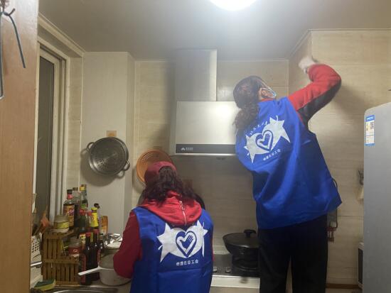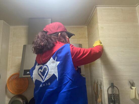 獨(dú)居老人董爺爺身患?xì)埣?,行動不便,家里處處布滿灰層,廚房更是雜亂無章,他的心愿就是擁有一個(gè)清潔干凈的家。蛇盤社區(qū)聯(lián)合工會的兩位志愿者阿姨用近3個(gè)小時(shí)幫董爺爺把家里打掃的干干凈凈。老人看到家中煥然一新,為她們豎起大拇指。