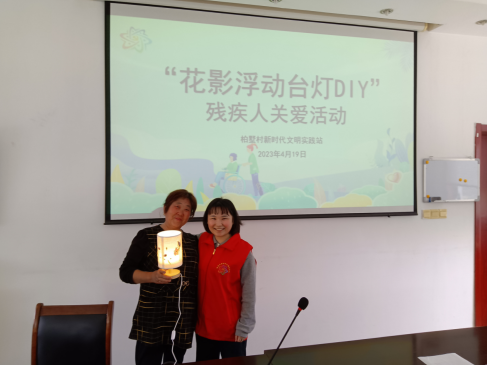 為了培養(yǎng)社區(qū)殘疾人群體的動(dòng)手能力,促進(jìn)了殘疾人群體更好地融入社會(huì),提升他們的幸福指數(shù),4月19日,江寧區(qū)淳化街道柏墅村開展“花影浮動(dòng)臺(tái)燈DIY”殘疾人關(guān)愛(ài)活動(dòng)。