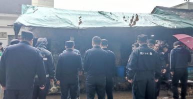寧新路(柏水橋段)地處轄區(qū)核心地段,人口密集,人流量大,因此占道經(jīng)營(yíng)、無(wú)證經(jīng)營(yíng)、活禽宰殺等問(wèn)題較為凸顯。此次集中整治行動(dòng)主要以九小場(chǎng)所是否存在占道經(jīng)營(yíng)行為、活禽宰殺是否擾民、是否證件齊全、是否有占道經(jīng)營(yíng)等問(wèn)題進(jìn)行專(zhuān)項(xiàng)整治。執(zhí)法人員先是對(duì)轄區(qū)內(nèi)各路段的流動(dòng)攤販勸導(dǎo)其有序經(jīng)營(yíng),引導(dǎo)其進(jìn)駐市場(chǎng)規(guī)范經(jīng)營(yíng),自覺(jué)防止污染環(huán)境現(xiàn)象發(fā)生;對(duì)于拒不整改或?qū)覄癫宦?tīng)的流動(dòng)攤販依法嚴(yán)肅查處;對(duì)吵鬧喧嘩、污染環(huán)境的,責(zé)令其限期整改.此外,嚴(yán)管?chē)?yán)控沿街店鋪“伸舌頭”情況,以“門(mén)前五包”加以約束,從根本上減少或杜絕占道經(jīng)營(yíng)。