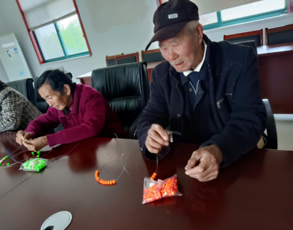 最后,志愿者給每位老年人發(fā)放了手工串珠材料包,一步一步帶領(lǐng)大家進(jìn)行手工串珠,志愿者對步驟進(jìn)行詳細(xì)講解并耐心等待、指導(dǎo)跟不上節(jié)奏的村民,在大家共同的努力下,所有村民都完成了“杯墊”這個美麗的“工藝品”。做手工不僅可以促進(jìn)老年人開動 腦筋、活躍思維,達(dá)到手、眼、腦三位一體的綜合協(xié)調(diào),同時還可以預(yù)防老年人記憶力下降。