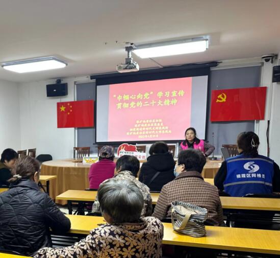為進(jìn)一步推動(dòng)黨的二十大精神走深走實(shí),讓廣大婦女群眾全面、準(zhǔn)確、及時(shí)地學(xué)習(xí)掌握黨的二十大精神,南京市棲霞區(qū)棲霞街道銀礦地質(zhì)社區(qū)黨總支聯(lián)合銀礦地質(zhì)社區(qū)婦聯(lián)在社區(qū)新時(shí)代文明實(shí)踐站開展“巾幗心向黨”黨員集中學(xué)習(xí)活動(dòng)。