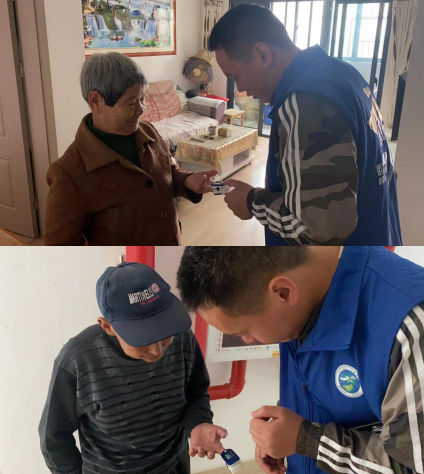 “張奶奶,您最近身體怎么樣啊?有沒有感覺到哪里不舒服?這個是血氧儀,我用它夾在你的手指上,給您測一下你的血氧狀況,血氧保持在95-100都是正常的,不要擔心,有什么事情及時和我們聯(lián)系。”網格員挨家挨戶上門給社區(qū)老人進行血氧測量,幫助老人們了解自身健康狀況,并且耐心叮囑老人平時要注意飲食健康,注意換季增減衣服,如果身體不適要第一時間聯(lián)系網格員。