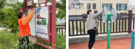 參加活動(dòng)的婦女們保持著高漲的勞動(dòng)熱情,充分發(fā)揚(yáng)不怕臟不怕累的勞動(dòng)精神,他們手持抹布、夾鉗等清潔工具,對(duì)廣場的活動(dòng)設(shè)施進(jìn)行全面清潔,她們有的擦座椅,有的擦扶手,有的擦宣傳欄,十分認(rèn)真和仔細(xì)的清理掉了沉積在角落里的蜘蛛網(wǎng)和灰塵,并對(duì)垃圾和煙頭進(jìn)行了打掃,她們通過自己的勞動(dòng)讓社區(qū)廣場面貌煥然一新,為居民提供了更加干凈、舒適的休閑娛樂環(huán)境。