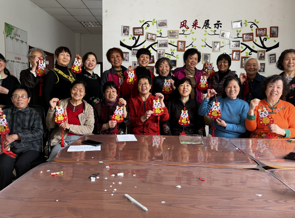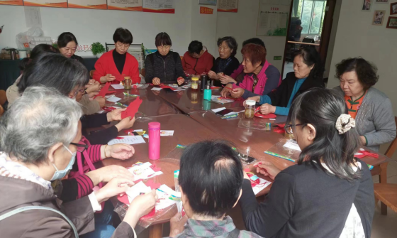 手工制作過程中,居民們互相交流,互相幫助。大家一邊跟著老師學(xué),一邊用心制作,固定、粘貼……每個(gè)步驟都一絲不茍,力求完美。時(shí)間一分一秒過去,一個(gè)個(gè)福字掛飾就制作完成了,大家欣賞著自己的作品,臉上都露出了燦爛幸福的笑容。
