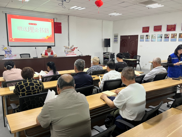 活動開始前,工會志愿者和社區(qū)工作人員先向與會人員贈送《黨的基本知識百問百答》等理論書籍,然后邀請優(yōu)秀黨員同志帶頭領(lǐng)學(xué)書中的重要章節(jié)?,F(xiàn)場,大家熱情高漲。工會職工和退休老黨員們認真參與活動,相互介紹和推薦自己喜歡的書籍。大家一起交流學(xué)習(xí)、分享心得體會,同時倡導(dǎo)多讀書、讀好書的文明風(fēng)尚。張文和表示,作為老黨員,需要及時學(xué)習(xí)最新的理論知識,不斷加強自身的理論修養(yǎng),努力發(fā)揮余熱,起到先鋒帶頭作用。