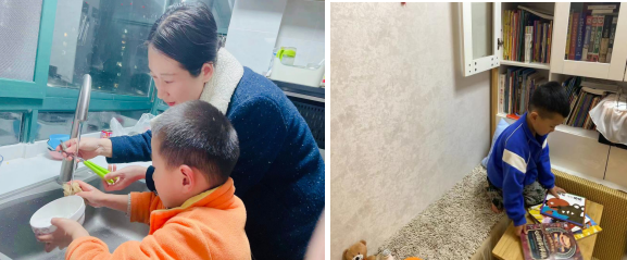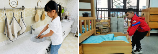 在家中,孩子們化身爸爸媽媽的小幫手,掃地、拖地、收拾餐具、洗菜、擦桌子、洗自己的小襪子、和媽媽一起做飯、照顧植物、整理書本......家庭是實施勞動教育的重要場所,鼓勵孩子們多多參與家務(wù)勞動,給予他們適量的表揚(yáng),不僅能提升孩子們自身的技能,也能進(jìn)一步拉近親子之間的關(guān)系。