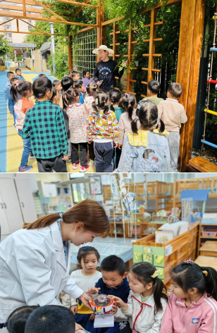 幼兒園還邀請了園林工人在給小朋友介紹植物的養(yǎng)護(hù)方法;醫(yī)生媽媽引導(dǎo)著孩子們了解保護(hù)眼睛的知識;工人爺爺帶著工具箱給寶貝們介紹著不同工具的用途,還有有趣的陶泥制作手工活動等。這些活動蘊(yùn)含了豐富的教育內(nèi)涵,不僅讓孩子們增長了知識,拓展了視野,還讓他們了解原來勞動榜樣就在身邊,秉承“勞動最光榮”的傳統(tǒng)美德。