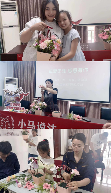 在母親節(jié)即將到來之際,為傳承中華民族傳統(tǒng)美德,豐富轄區(qū)居民的文化生活,5月13日上午,南京市棲霞區(qū)馬群街道關(guān)工委、青春志愿同盟、青馬社區(qū)關(guān)工委開展“母愛無涯 感恩有你”母親節(jié)主題親子插花活動,借此活動向轄區(qū)的媽媽們送上母親節(jié)的節(jié)日祝福。