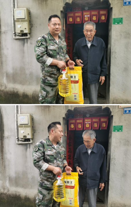 西城村退役軍人服務(wù)站、西城民兵營以及網(wǎng)格員帶著油、米、洗發(fā)水、牙膏等食物和日用品來到許爺爺家中。網(wǎng)格員對許爺爺近期身體狀況進(jìn)行了詢問,了解他在平時是否有高血壓、高血糖、高血脂等常見老年疾病,并叮囑許爺爺注意天氣變化,及時增減衣服,養(yǎng)成飲食規(guī)律的良好生活習(xí)慣,如有困難和問題及時跟網(wǎng)格員聯(lián)系,要照顧好自己的生活,保持樂觀的心態(tài)。許爺爺也拉著退役軍人服務(wù)站的志愿者們嘮家常,許爺爺給他們講述了他年輕時參軍時的英勇事跡,志愿者們告訴許爺爺如今我們國家已發(fā)展成軍事強(qiáng)國,對他曾經(jīng)為國家做出的貢獻(xiàn)表示由衷感謝。