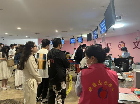 2023年5月18日的數(shù)字組合可以解釋為“佳人成雙,白頭偕老”,同時(shí)又諧音為“我要發(fā)”,是一個(gè)典型和諧、美好的陰陽組合。5月18日,江寧婚姻登記處已預(yù)約100余對(duì)等待結(jié)婚的新人。
