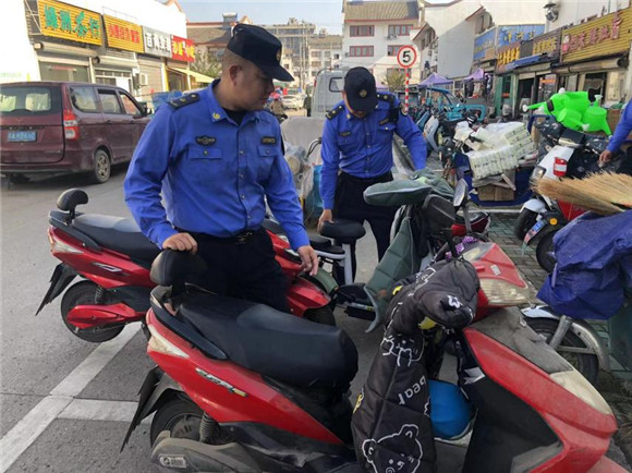采取徒步巡查、機動巡查、錯時管理等方式,對轄區(qū)內(nèi)沿街門店占道經(jīng)營、亂堆亂放、非機動車亂停亂放、“牛皮廯”等進行全面排查整治,督促沿街商戶嚴格遵守門前責任區(qū)規(guī)定,告知其嚴禁將物品擺放在人行道上,并對人行道上亂停亂放的非機動車進行整治,切實做到發(fā)現(xiàn)一處、糾正一處、整治一處。