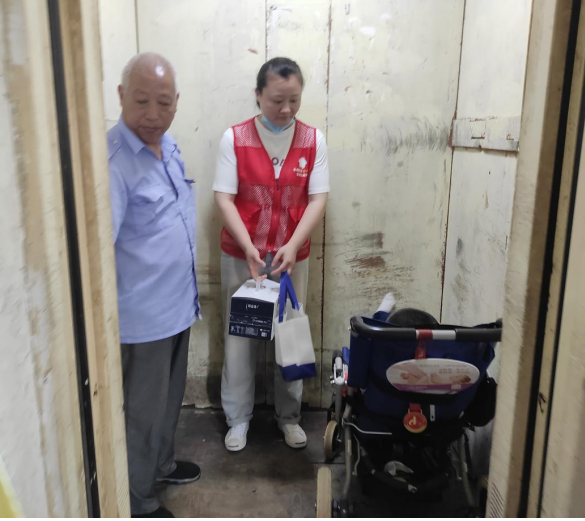 6月1日上午9點(diǎn),4名工作人員帶著牛奶、雞蛋和提前準(zhǔn)備好的餛飩皮、餛飩?cè)怵W準(zhǔn)時(shí)來(lái)到了蔣小朋友家樓下,就見(jiàn)蔣爺爺推著小朋友已經(jīng)提前在樓道口等候了。一見(jiàn)到工作人員們,小朋友臉上就綻開(kāi)了笑容,并且難得的發(fā)出了歡笑聲。