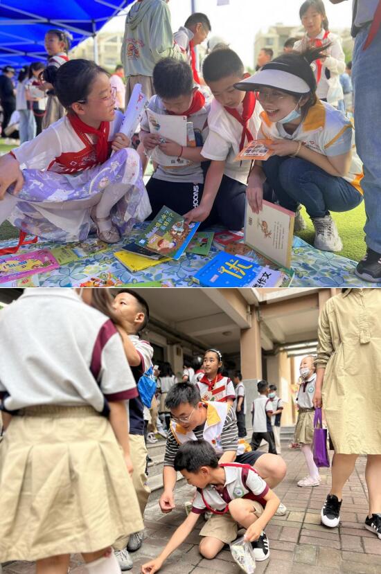 活動現(xiàn)場,志愿者們積極維持著秩序,及時幫助同學(xué)們避免危險行為,確?,F(xiàn)場的安全和順暢,此外,他們還協(xié)助老師和同學(xué)們整理現(xiàn)場的書籍,幫忙喊價和砍價等。義賣現(xiàn)場各種任務(wù)分工明確,有銷售員、收銀員、管理人員等一系列人物設(shè)定,銷售員們深諳銷售之道,紛紛展示自己的才藝,一場豐富多彩的快板表演,讓整個現(xiàn)場充滿了熱火朝天的氣氛。此起彼伏的叫賣聲、琳瑯滿目的愛心物品、獨(dú)特新奇的宣傳方式……吸引了很多人們駐足觀賞,爭相購買。