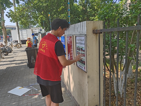 活動中,志愿者們一邊更換掉老舊的宣傳標(biāo)識,一邊對展板內(nèi)容進(jìn)行了宣傳學(xué)習(xí)。這些內(nèi)容有社會主義核心價值觀、關(guān)心關(guān)愛未成年人、居民公約、善行義舉等,宣傳的內(nèi)容是文明創(chuàng)建的重要指標(biāo),大家在學(xué)習(xí)的同時,也明確了社區(qū)文明指數(shù)提升的方向和目標(biāo)。