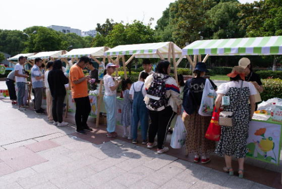 環(huán)?;照?、趣味發(fā)夾、繽紛扭扭棒,創(chuàng)意手作眼花繚亂。攤位前,大家充分發(fā)揮創(chuàng)意,一起用畫筆讓紙箱變身,一起讓帆布袋變靚,大家心懷童趣,精心設(shè)計,用DIY的方式傳遞環(huán)保理念。