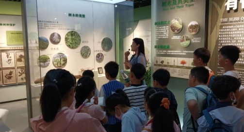 接下來同學(xué)們來到了樹木標(biāo)本館。在這里,同學(xué)們見到了許多野生樹木的樹葉、枝干、樹皮制成的標(biāo)本。好奇觀賞的同時(shí),老師向小朋友們進(jìn)行了耐心的介紹。同學(xué)們不僅知道了樹木的定義,也了解了樹木的起源以及不同的類型。更在受威脅樹種保護(hù)區(qū)域認(rèn)識(shí)到了保護(hù)樹木,保護(hù)生物多樣性是多么重要。