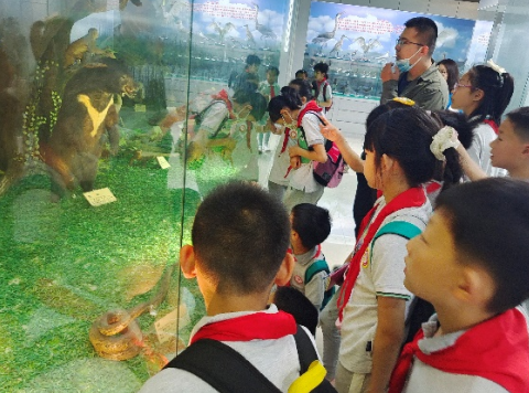 下一站進(jìn)入了動(dòng)物標(biāo)本館。門一打開,眼前的景象便讓小朋友們驚奇不已。館內(nèi)陳列著各類珍禽以及多種水陸動(dòng)物的標(biāo)本。自由參觀過后,小朋友們?cè)谥v解員的帶領(lǐng)下分區(qū)域依次更為仔細(xì)地觀賞了動(dòng)物標(biāo)本,了解了動(dòng)物的種類,明白了生物多樣性對(duì)動(dòng)物生存的影響,也通過見識(shí)各種動(dòng)物加深了對(duì)生物多樣性的認(rèn)識(shí)。