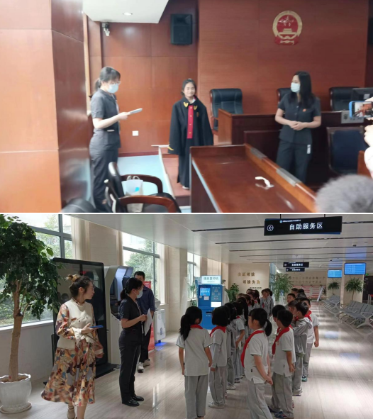 為了增強(qiáng)學(xué)生們的法律意識(shí),認(rèn)識(shí)到知法、學(xué)法、懂法、用法的重要性,2023年5月26日,在南京市棲霞區(qū)馬群街道關(guān)工委的組織下,青馬社區(qū)關(guān)工委、街道司法所和南京市太陽(yáng)城小學(xué)二(3)班的同學(xué)到人民法院的各個(gè)部門(mén)進(jìn)行參觀。