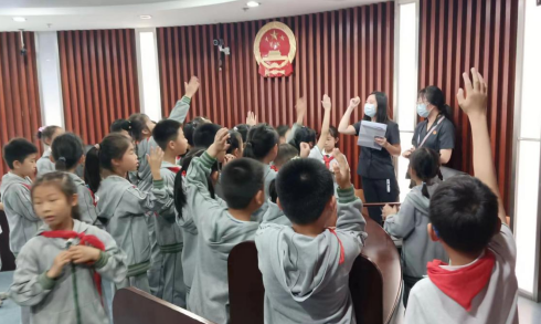 法官向?qū)W生們介紹了法院的法治理念,講解有關(guān)公平公正、司法為民的故事,講解員向?qū)W生們普及法律小知識(shí),學(xué)生積極回答贏得小獎(jiǎng)品,司法警察的嚴(yán)肅著裝也讓孩子們體會(huì)到法院的莊嚴(yán)與肅穆。