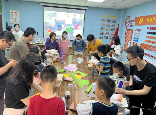作為本學期最后一節(jié)課,社區(qū)家長們也與未成年人一起做起了相關實驗,增強了親子互動,并向大學生志愿者們和社區(qū)表達了感謝。“齊益果”假期趣味課堂不僅給了社區(qū)未成年人在每周有興趣培養(yǎng)、知識學習的“第二課堂”,也增加了假期實踐的渠道,讓社區(qū)未成年人們在這里交朋友,熟悉社區(qū)的環(huán)境,接收社區(qū)教育。