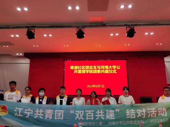 為促進(jìn)“高校+社區(qū)”服務(wù)惠及更多社區(qū)居民,6月7日,河海大學(xué)公共管理學(xué)院團(tuán)委與南京市江寧區(qū)秣陵街道青源社區(qū)團(tuán)總支舉辦聯(lián)建共建儀式,此次共建旨在建立學(xué)校、社區(qū)聯(lián)動(dòng)的團(tuán)學(xué)新格局,也是共同推進(jìn)優(yōu)勢(shì)資源共享共贏機(jī)制的首次嘗試。河海大學(xué)公共管理學(xué)院團(tuán)委書記與2名大學(xué)生團(tuán)員志愿者、青源社區(qū)團(tuán)總支書記與10名團(tuán)員志愿者參加了此次共建活動(dòng)。