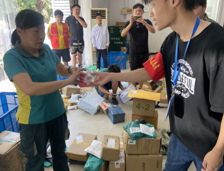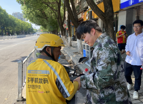 在社區(qū)馬群新街外賣小哥集中休息點和街頭,社區(qū)退役軍人服務(wù)站和民兵連的志愿者們跟他們嘮家常,詢問當(dāng)前工作的情況,日常騎行要注意交通安全、遵守交通規(guī)則,暖心話語讓他們倍感親切,冰鎮(zhèn)過的礦泉水也緩解了他們之前忙碌的疲勞;在中國郵政,志愿者們給快遞小哥們幫了會忙,叮囑他們注重防曬和避暑。