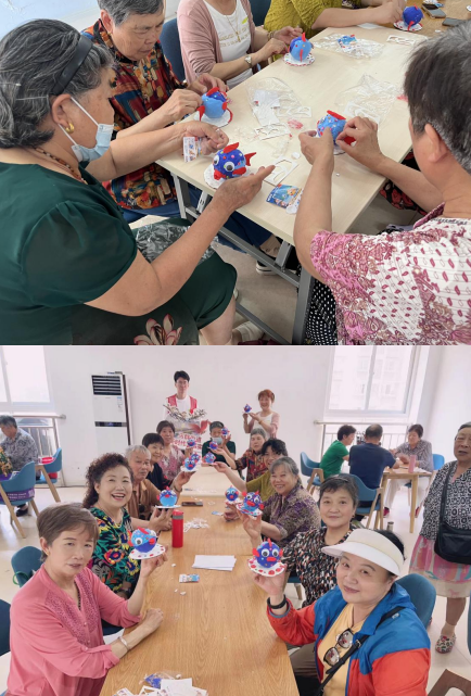 居民通過制作黏土泡泡魚,不僅能體驗到材料的柔軟性和可塑性,也可以鍛煉手腦協(xié)調、注意力等多方面能力。在創(chuàng)作過程中,大家積極交流,既可以參考已有的模板,也可以自由發(fā)揮,創(chuàng)造出屬于自己的泡泡魚形狀。大家十分珍惜這一次放松心情、釋放壓力、享受DIY樂趣的機會,完成了自己的杰作后紛紛與它們合了影。
