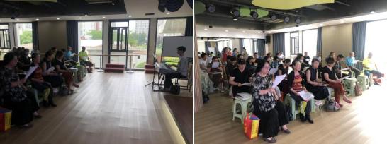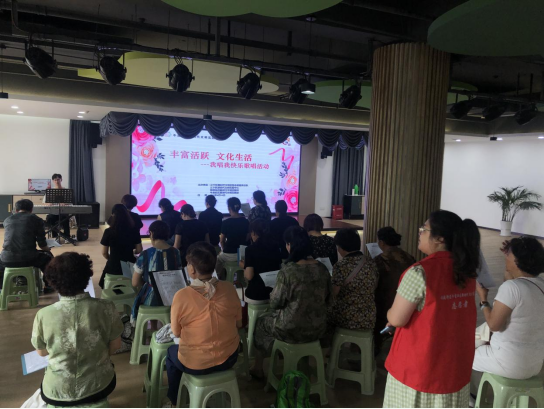 活動中,聲樂老師為居民們準備了幾首耳熟能詳的經典曲目,并細致講述發(fā)聲練習在歌唱中的重要性,帶領大家通過呼氣、吸氣來練習聲樂的基本功以及學習曲譜的基本知識。在聲樂老師的指導下,居民們和著優(yōu)美的旋律,充滿激情地歌唱著,現場氣氛十分融洽。“學習唱歌對我來說是個十分新奇的體驗,而且我確實學到了很實用的唱歌技巧,希望以后能夠多多參與聲樂培訓,與大家一起唱歌。”
