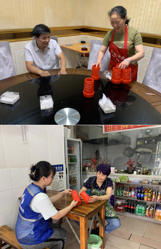 隨后,工作人員為餐飲單位發(fā)放公筷桶,倡導(dǎo)商戶積極引導(dǎo)顧客使用公筷公勺,并在餐桌醒目位置設(shè)置提示牌,踐行文明就餐理念。