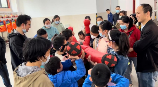 “我們消防員平時都要進行力量訓(xùn)練,比方說扛假人,來模擬火場中的救人行動。我們假人的重量通常在120-140斤左右……”小紅,消防隊里的假人,重60公斤,一個普通成年人左右的體重,是消防員訓(xùn)練道具之一。在志愿者的鼓勵下,20個小朋友一起努力,才勉強將假人抬起,大家對消防員的辛苦有了更深的體會。