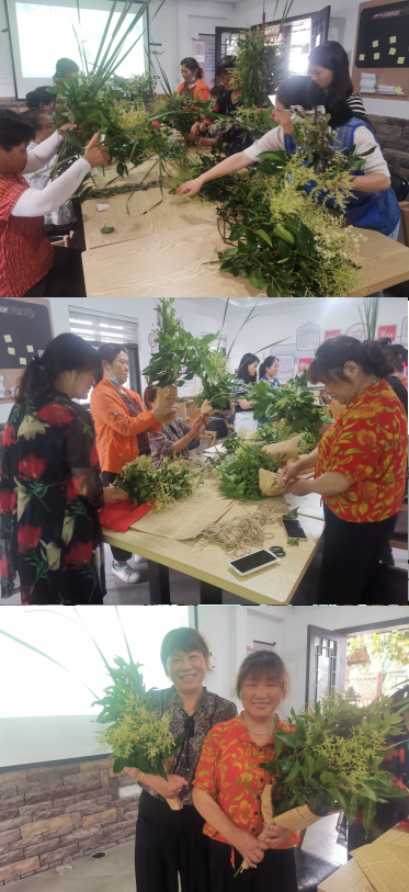 每逢端午時(shí)節(jié),家家戶戶都會(huì)把艾草插在門口,祈求平安,辟邪祛病。隨后,大家開(kāi)始了動(dòng)手實(shí)踐,艾草、菖蒲葉、桃樹(shù)枝、香樟果......在志愿者的指導(dǎo)下,大家熱情高漲,運(yùn)用豐富的花材認(rèn)真設(shè)計(jì)裝扮節(jié)日的花束。在一雙雙靈巧的雙手下,一件件芬芳美麗的端午花束作品誕生了,美好、向上的力量在這次活動(dòng)中得到了充分的體現(xiàn)。