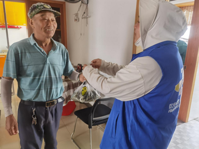 現(xiàn)場(chǎng),社區(qū)網(wǎng)格員走訪(fǎng)慰問(wèn)了8戶(hù)孤寡老人,切實(shí)把溫暖送到他們的家中。網(wǎng)格員帶著濃濃的節(jié)日情意,陪著老人嘮家常,了解他們的生活近況、身體情況,聽(tīng)聽(tīng)他們的需求。其中一名老人感慨:“感謝政府,生活在這個(gè)年代我很幸福,我一定要好好保重身體。”臨走時(shí),社區(qū)網(wǎng)格員特別叮囑老人們要健康飲食,加強(qiáng)鍛煉,注意出行安全,保持樂(lè)觀心態(tài)。