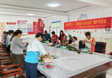 活動(dòng)伊始,工作人員向村民們詳細(xì)介紹了端午節(jié)的由來、習(xí)俗、傳統(tǒng)活動(dòng)、傳統(tǒng)飲食等知識,使大家對端午節(jié)有了直觀的感性認(rèn)識。隨后將提前準(zhǔn)備好的糯米、粽葉、紅豆、蜜棗等餡料整齊地?cái)[放在桌子上,村民們迫不及待動(dòng)起手來,洗粽葉、淘糯米、剪扣繩……大家互相傳授經(jīng)驗(yàn)、互動(dòng)分享,活動(dòng)現(xiàn)場一片歡聲笑語,氣氛和諧,不一會兒工夫,一只只漂亮的粽子就成形了,濃濃的端午節(jié)氣氛撲面而來。村民們紛紛表示,此次活動(dòng)的開展,不僅弘揚(yáng)了中華民族傳統(tǒng)文化,提升了文化認(rèn)同感,也在互動(dòng)交流中感受到了端午節(jié)的民俗文化魅力,拉近了鄰里間的距離,希望以后能多多開展此類活動(dòng)。