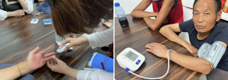 在活動的最后,工作人員為在場的部分成員測量血壓、血糖,有些殘疾人、老人血壓血糖偏高,工作人員為其耐心的講解一些健康知識,教會其如何降壓降糖、健康飲食及體檢的重要性。