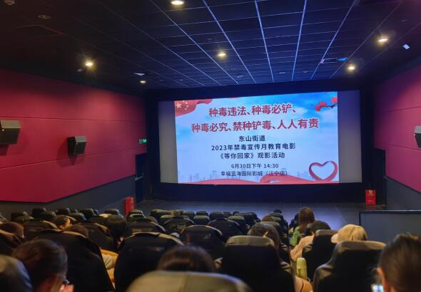 加大禁毒宣傳工作力度,進(jìn)一步加強(qiáng)禁毒宣傳教育和警示教育,持續(xù)提高全民識毒能力、防毒態(tài)度、拒毒意識,6月30日下午,南京市江寧區(qū)東山街道邵圣社區(qū)組織轄區(qū)居民、退役軍人于金箔路幸福藍(lán)海國際影城觀看禁毒警示教育電影《等你回家》。