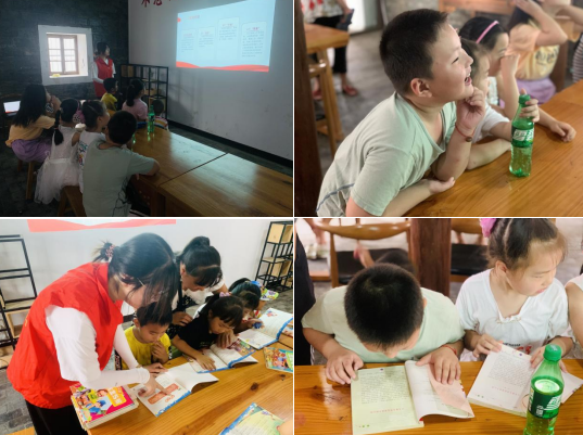 活動一開始,志愿者先向青少年們宣講了黨的二十大精神,包括黨的二十大的主題、主要成果,全面建設(shè)社會主義現(xiàn)代化國家的目標(biāo)任務(wù),習(xí)近平總書記在黨的二十大開幕會上的重要講話等,大家聽地聚精會神。隨后,志愿者帶領(lǐng)青少年們進(jìn)行閱讀活動。大家拿到志愿者發(fā)到的圖書后,迫不及待地翻開書頁閱讀起 來。有的沉浸在自己的書中,有的與旁邊的伙伴興致勃勃地討論。
