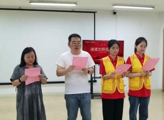 接下來,在場人員和志愿者共同誦讀文明倡議書。用朗讀的方式號召大家攜手同心,從點(diǎn)滴做起,不亂扔垃圾,創(chuàng)造整潔的生活環(huán)境。遵守交通規(guī)則,維護(hù)良好的城市秩序。文明有寧,一起為南京助力、為棲霞加油!