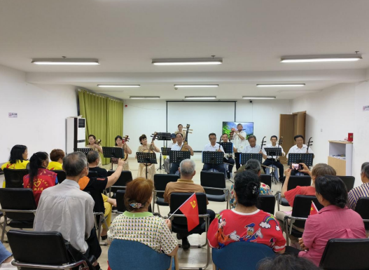 最后壓軸出場——牡丹民樂藝術(shù)團(tuán),經(jīng)過多次集中演練,當(dāng)晚聚精會神地演奏經(jīng)典紅歌《繡金匾》、《再唱山歌給黨聽》,樂聲中飽含著對偉大的中國共產(chǎn)黨的無限熱愛。本次文藝活動暨“慶七一”全民閱讀活動不僅激發(fā)了黨員群眾對傳統(tǒng)文化和民俗文化的興趣,營造了濃厚的文化氛圍,也涵養(yǎng)了社區(qū)居民精神文化,使社區(qū)文化建設(shè)活動更加豐富。